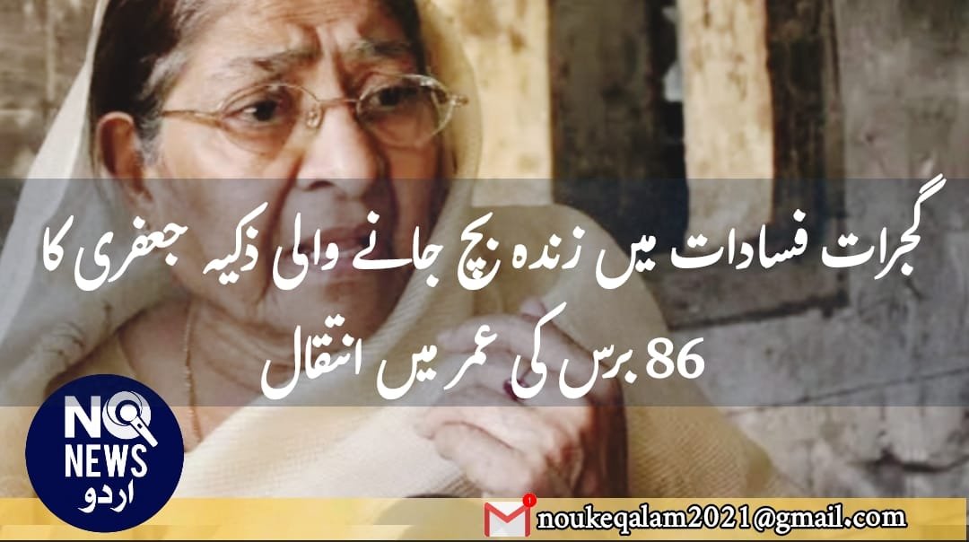 ہندوستان گجرات فسادات میں زندہ بچ جانے والی ذکیہ جعفری کا 86 برس کی عمر میں انتقال noukeqalam 02 Feb 2025 نوکِ قلم نیوز ڈیسک //احمد آباد : سابق رکن پارلیمنٹ احسا...