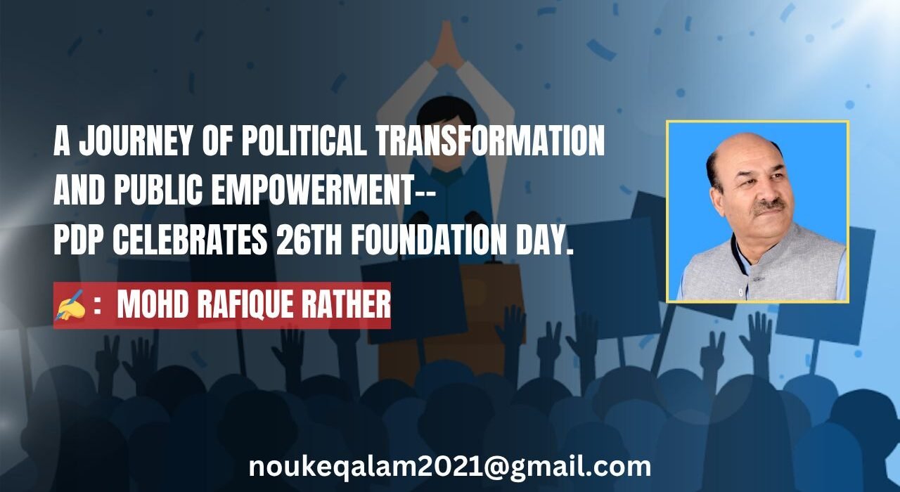 As the Jammu and Kashmir Peoples Democratic Party (PDP) marks its 26th Foundation Day on July 28th, it is an occasion not just of celebration, but of reflection—on a political journey rooted in the aspirations of the people of Jammu and Kashmir, and on the enduring legacy of its founding father, Mufti Mohammad Sayeed.