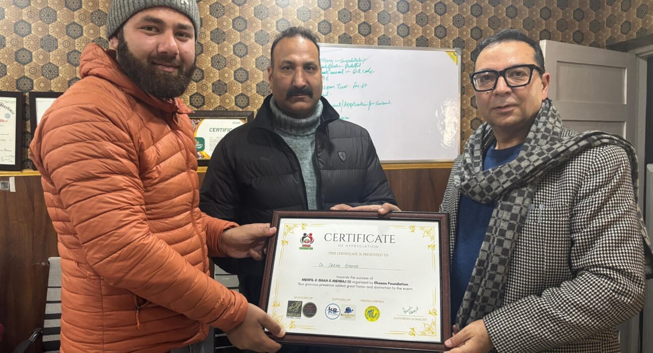 Srinagar 22 Jan: Ehsaas Foundation felicitated renowned medical professional Dr Ibrar Bashir, a General Physician and Public Health Specialist, in recognition of his selfless services and compassionate approach toward humanity.
