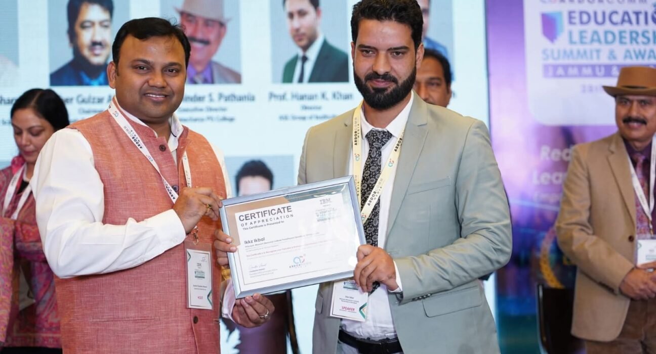 Ikkz Ikbal, Principal of Maryam Memorial Institute Pandithpora Qaziabad, was featured as one of the eminent speakers at the ArdorComm Education Leadership Summit & Awards 2025 held in Jammu & Kashmir at Taj Vivanta, Jammu. In recognition of his contributions to advancing school education, he was presented with the award for “Impact and Innovation in School Education.”