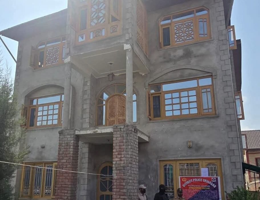 October 4: In a significant step towards dismantling terror networks and their support structures, Police in Srinagar has attached a three-storey residential house constructed over 15 marlas of land (Survey No. 43 min, Estate Khushipora), located at Rose Avenue, HMT. The property, valued at approximately ₹2 Crore, stands recorded in the name of Ghulam Mohammad Sheikh son of Khawja Anwar Sheikh father of designated terrorist Sajad Ahmad Sheikh @Sajad Gul, as per revenue records and verification from Tehsildar Central, Shalteng, Srinagar.