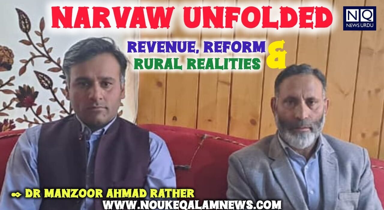 Introduction: Land constitutes the foundational axis of rural socio-economic organization in Kashmir. The study of land revenue systems not only reveals patterns of ownership and production but also provides insights into power relations, governance structures, and developmental trajectories. Narvaw, a historically agrarian region, offers a compelling case for examining the intersection of traditional landholding systems and modern administrative reforms.This chapter is based on a structured interview conducted by Dr. Manzoor Ahmad Rather with Mr. Mashooq Ahmad Parray, the Naib Tehsildar of Narvaw, aiming to document the empirical realities of land administration while situating them within a broader analytical framework.