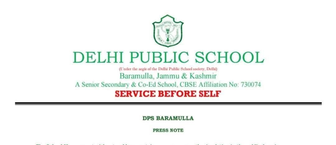 Baramulla, April 10 : :A major protest broke out at Delhi Public School (DPS) Baramulla on Friday after students boycotted classes and staged demonstrations against the principal over alleged objectionable remarks, prompting swift intervention by the district administration.
