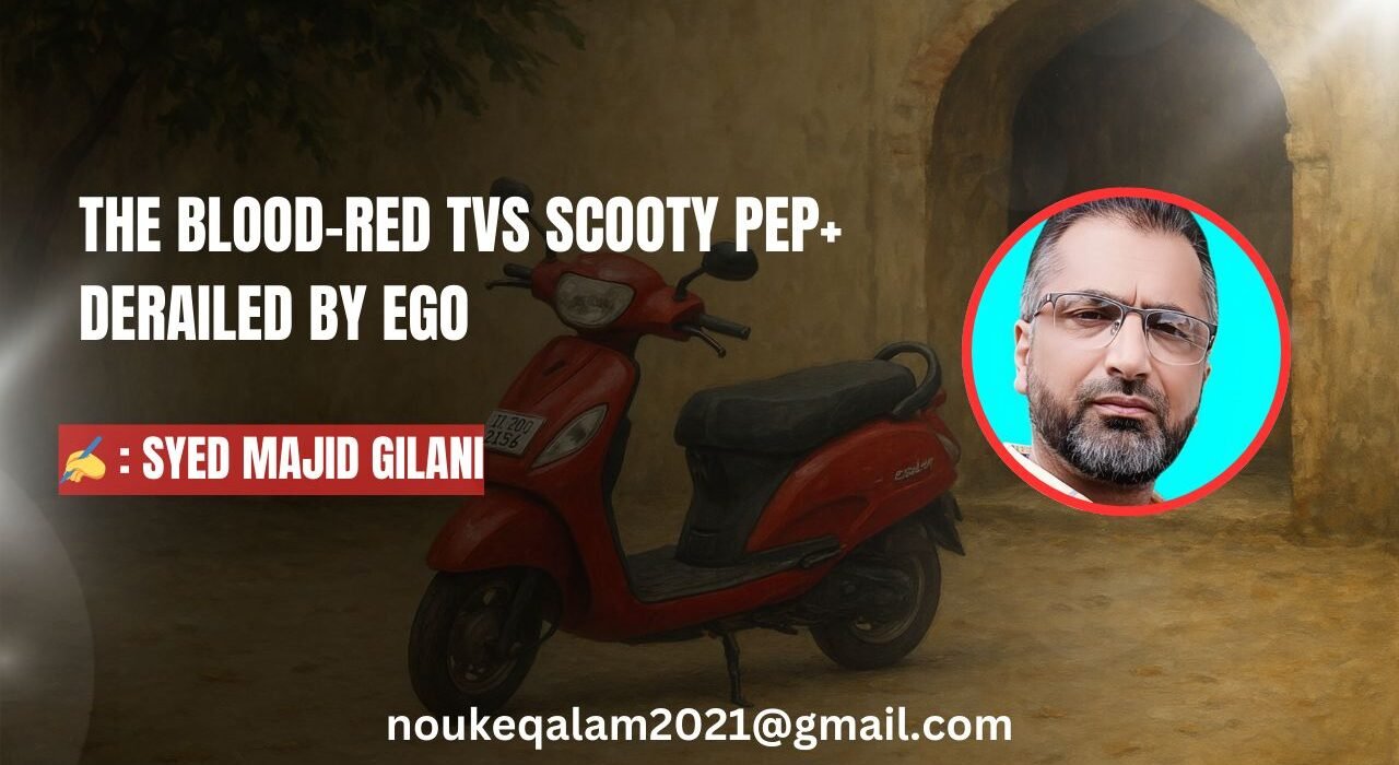 So he began saving, until one morning, he took Neelofer with him on a public bus to Lalchowk. They walked together to M/S Kashmir Motors. He had not told her the reason for this little trip. In his heart, the choice was already made—a gleaming blood-red TVS Scooty Pep+. Light, gearless, easy to handle, and perfect for her. The colour was deliberate—bright, feminine, chosen for her, though he too would ride it when needed.