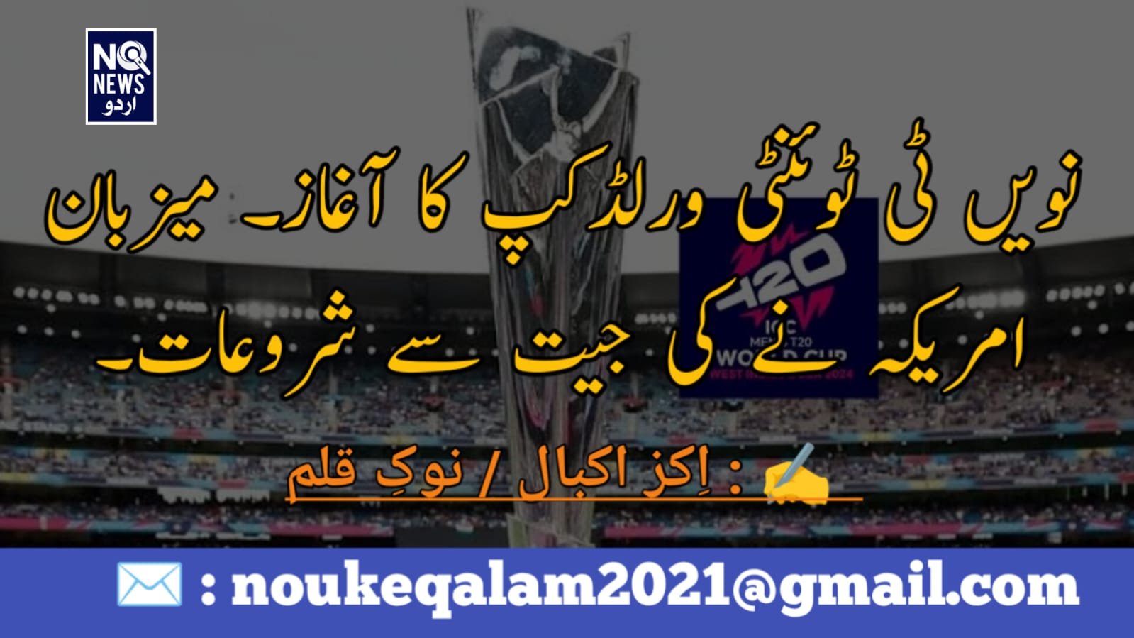 کھیل نویں ٹی ٹوئنٹی ورلڈکپ کا آغاز۔ میزبان امریکہ نے کی جیت سے شروعات۔ noukeqalam 02 Jun 2024 اِکز اکبال / نوکِ قلمجون 02 / 2024امریکی شہر ڈیلاس میں نویں ...