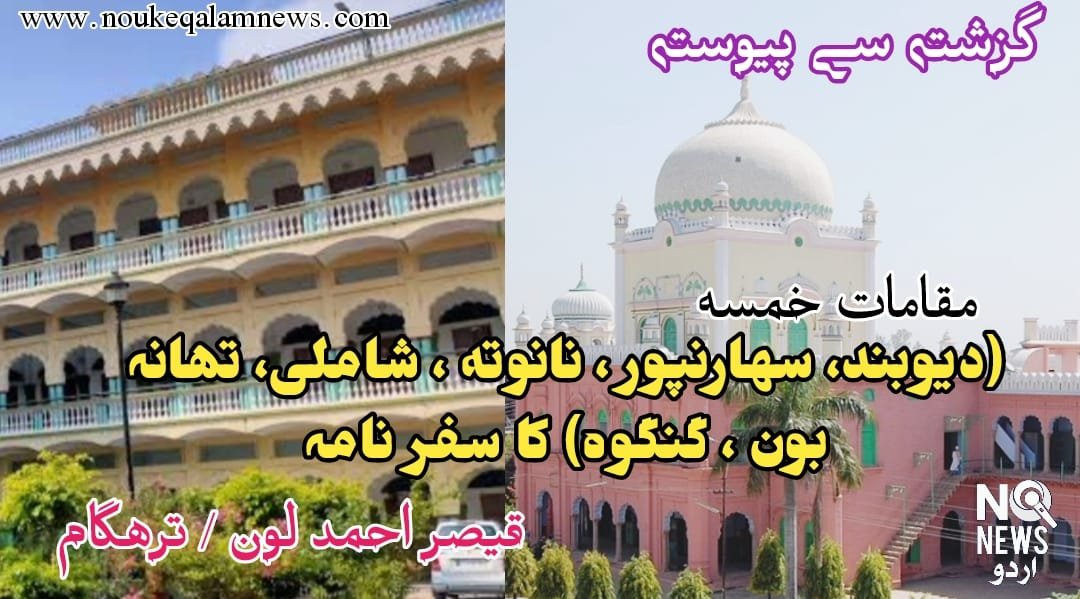 سفر نامہ "مقامات خمسہ" (دیوبند، سہارنپور ، نانوتہ ،شاملی، تھانہ بون ،گنگوہ) کا سفر نامہ noukeqalam 25 Oct 2024 ✍️:. قیصر احمد لون /ترہگام کپواڑہ گزشتہ ہفتے ہندوستا...